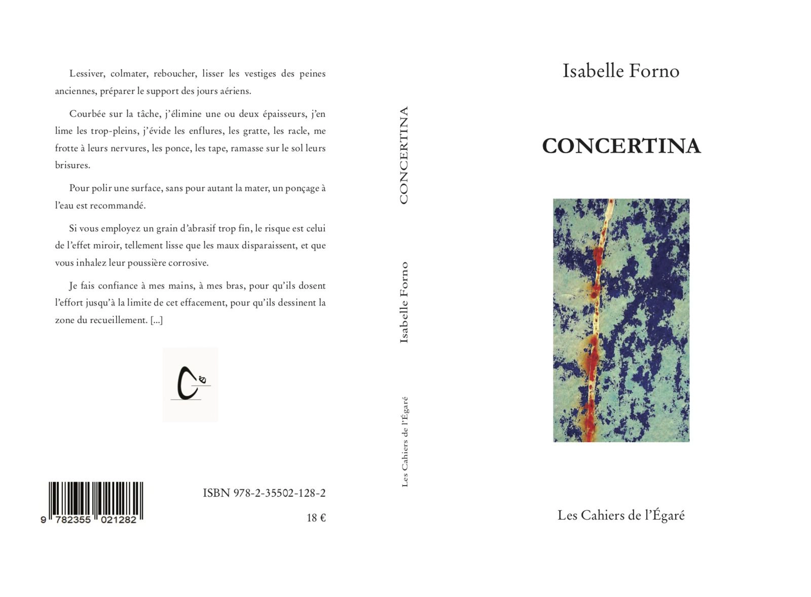 Sa musique vive et enjouée, semble s’échapper du « concertina », ce petit accordéon complice des danseurs et des clowns, aux sons mordants et doux, et que l’on ne tient pas avec des sangles. Ses mots parfois deviennent des cris, piqués au fil du barbelé, tel le « concertina » d’acier que l’on déroule sur les clôtures des sites ultra-sensibles, et composé de petites lames affûtées et tranchantes. Sous des formes courtes et variées, entre récits, nouvelles et poésies, avec ses textes tout à la fois pudiques et corrosifs, tendres et amers, drôles et tragiques, cueillis au plus près du réel ou portés par l’imaginaire, Concertina vous touche en plein cœur.
